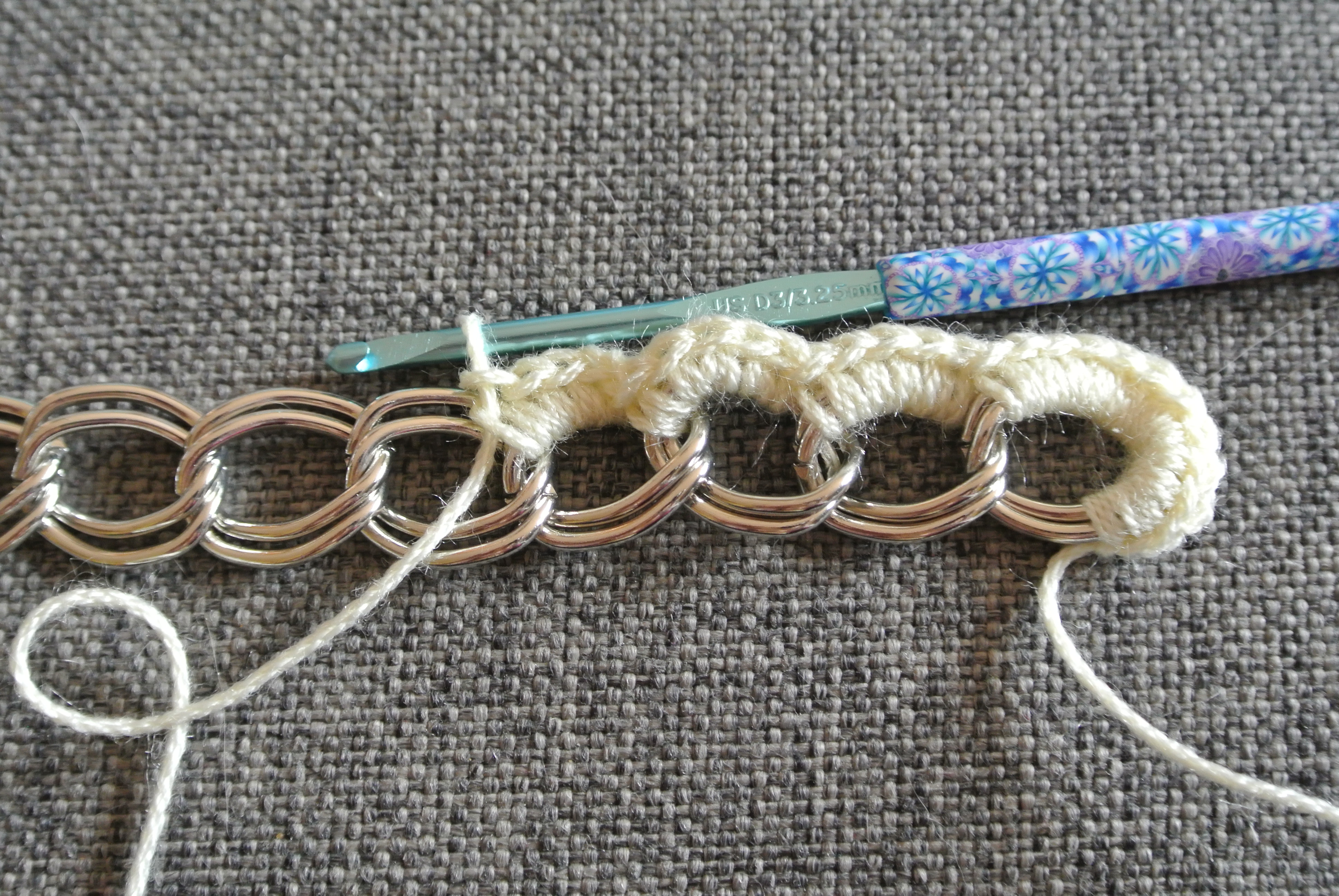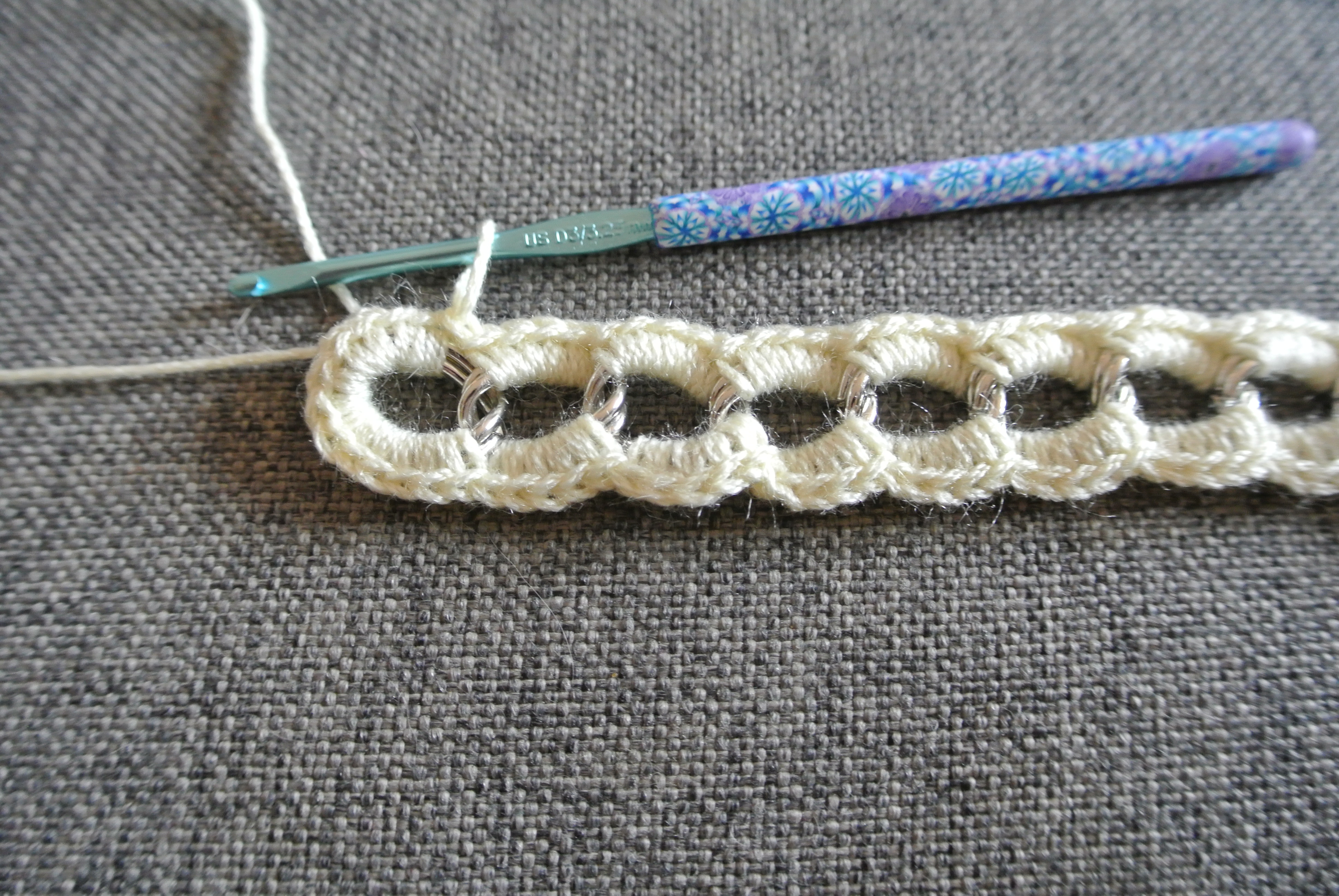 When you reach the link at the end, work the same number of sc as you did in the first link and continue crocheting along the other side.